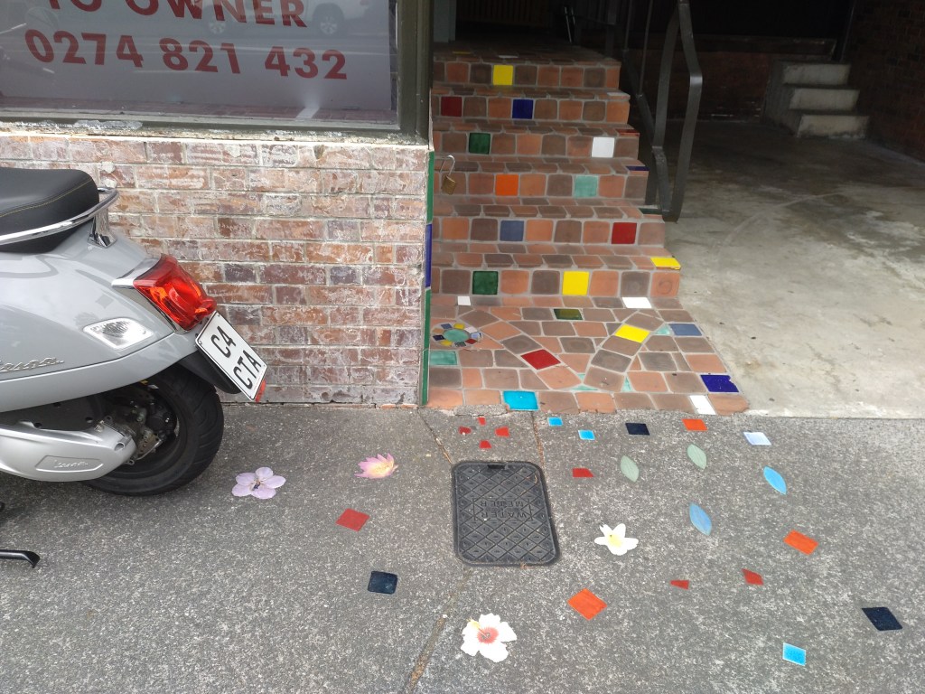 Kreative Plättli schmücken den Eingang der Kunsthochschule in Auckland