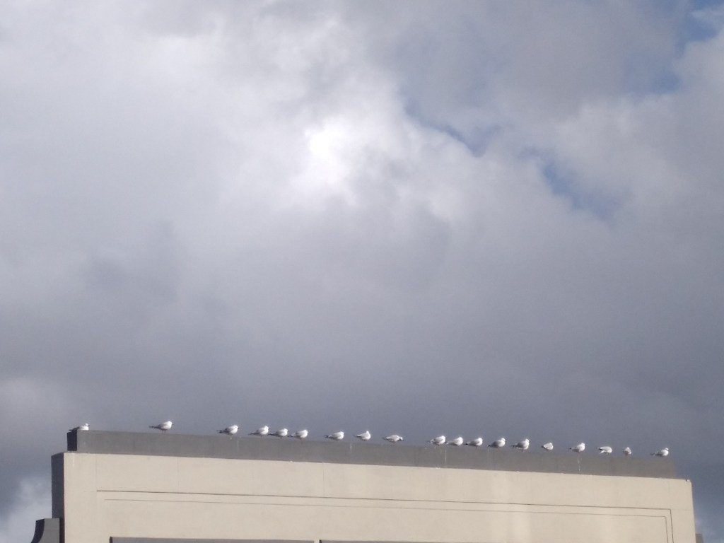Möwen in der „Warteschlange mit Sicherheitsabstand“ vor dem Abflug