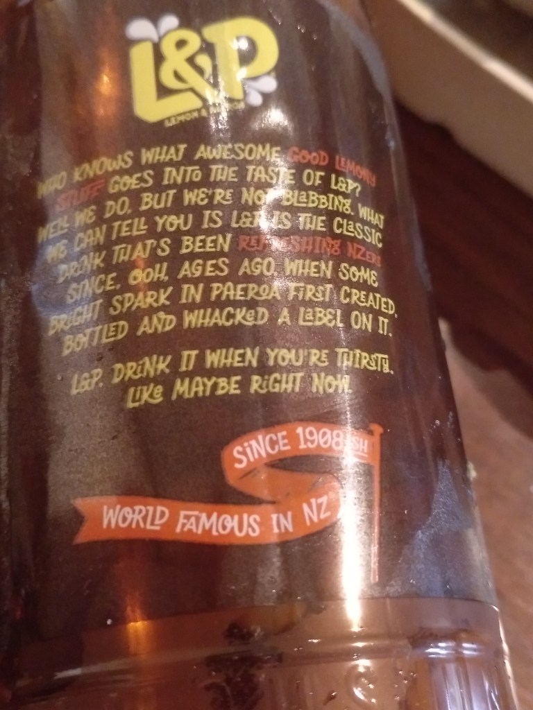 In unsere Zeit in Auckland haben wir intensiv neuseeländische Produkte ausprobiert. Das neuseeländische Getränk hier macht Reklame mit dem Slogan: weltweit berühmt in Neuseeland. „Die Welt“ kann in der Reklame ganz schön klein sein.