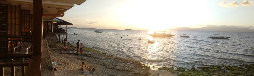 Der neue Ort am Panagsama Beach ist für uns perfekt. Wieder wohnen wir in einem kleinen, bescheidenen Zimmerchen ohne TV, aber das Hotel bietet direkten Zugang zum Meer und das Beste von allem: unser Zimmer hat ein Balkönlein mit Meersicht!